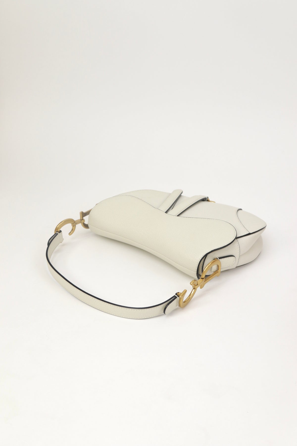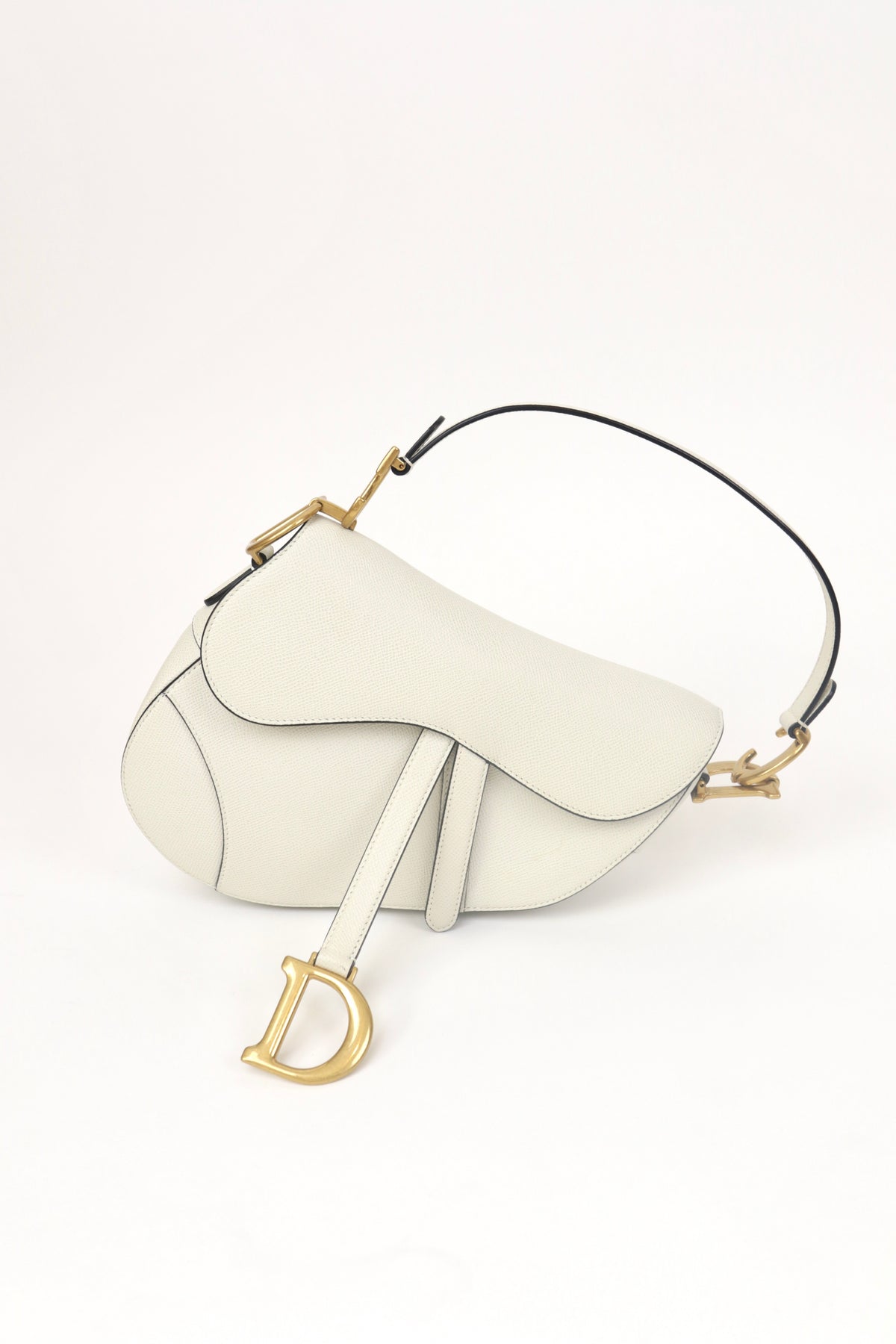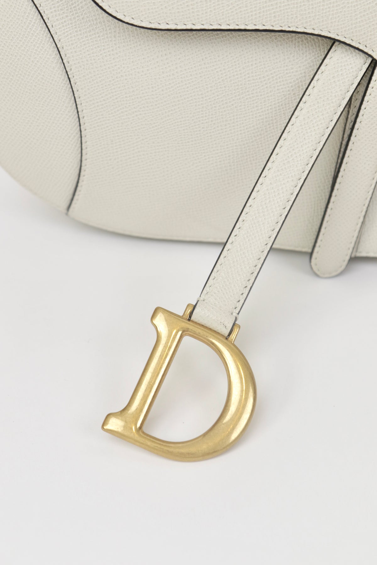 Maria Grazia Chiuri brings a fresh update to the iconic Saddle bag. Crafted in black grained calfskin, the legendary design features a Saddle flap with a D stirrup strap and magnetic pull, as well as an antique gold-finish metal CD signature on either side of the handle. Equipped with a thin, adjustable and removable strap, the Saddle bag may be carried by hand, worn over the shoulder or crossbody.