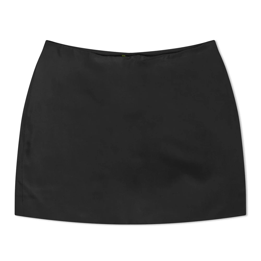 GAUGE81 creates the perfect black mini skirt with a straight line hem. Featuring internal shorts and hidden side zipper closure, it perfectly falls on the hips to pair with a corset or a button-up blouse.