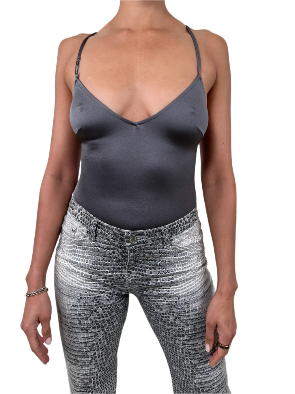Exude effortless ’90s Italian glamour with this Dolce & Gabbana vintage swimsuit bodysuit. Crafted from lustrous charcoal grey satin, this sleek one-piece features a plunging V-neckline and delicate spaghetti straps adorned with silver-tone Dolce & Gabbana logo hardware, adding a signature designer touch. The low-cut open back enhances its sultry, minimalist silhouette, making it a striking yet refined statement piece.