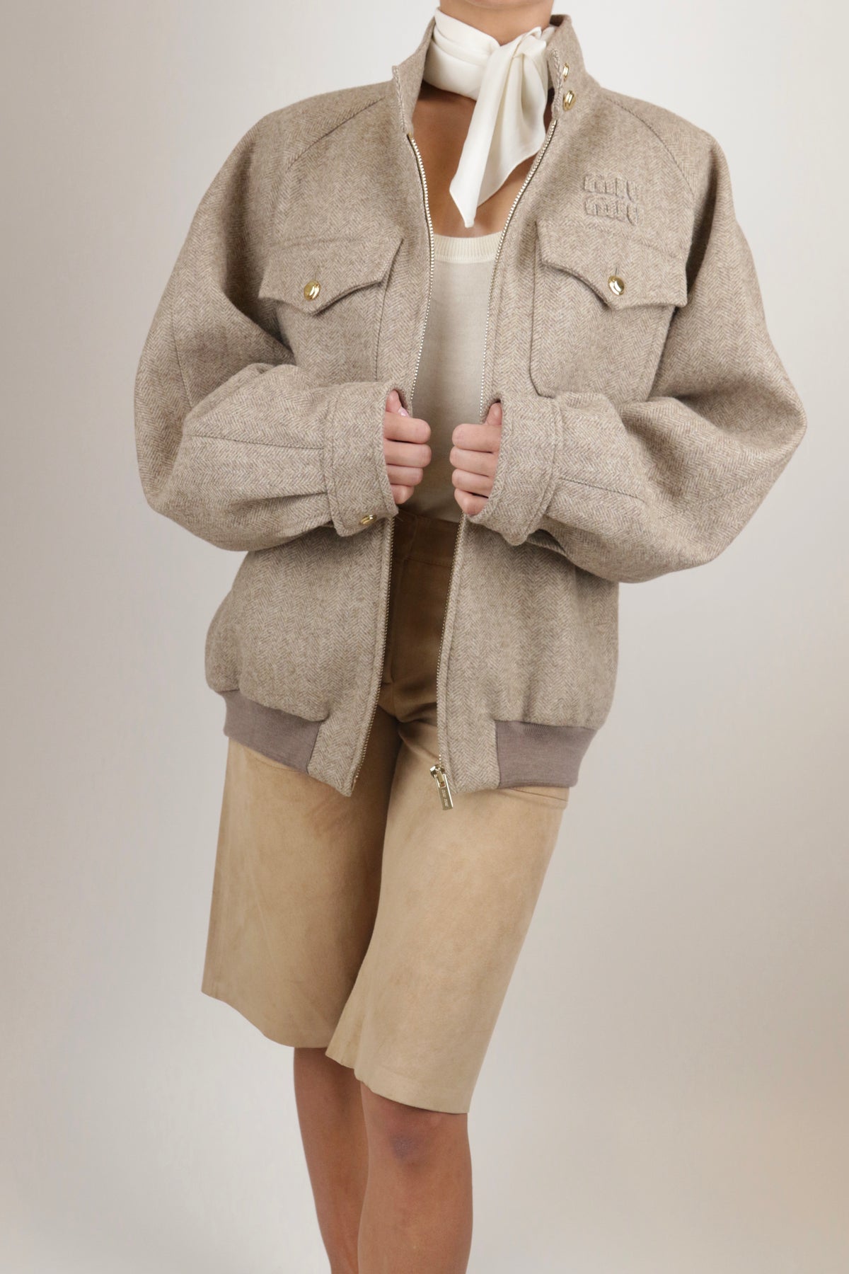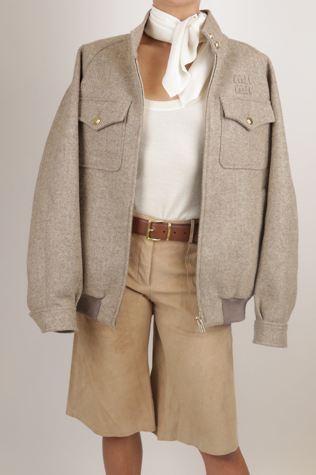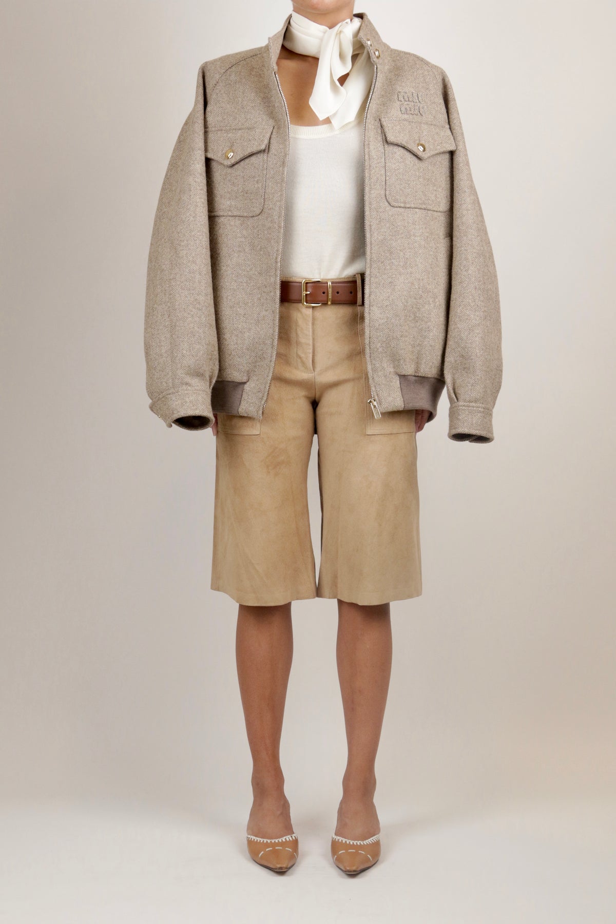 Styled with Miu Miu Tweed Jacket and Miu Miu Vintage Mules.