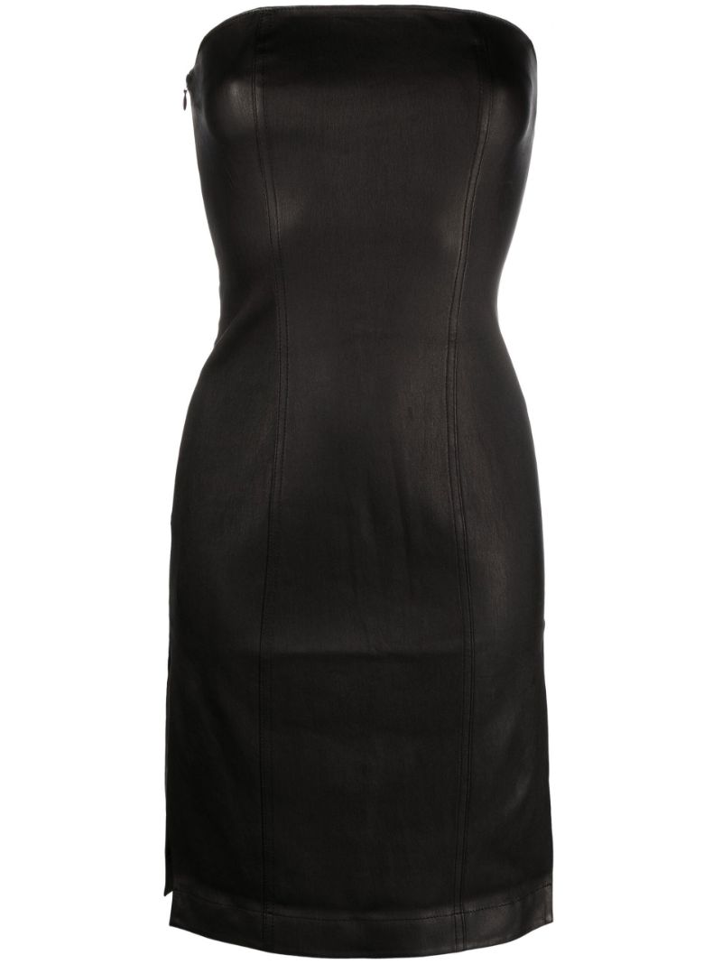 As seen on Kylie Jenner, this classic leather strapless dress showcases the sleek elegance of Ludovic de Saint Sernin. Made in France from panels of black leather, it has a strapless bustier-style bodice and side slit for ease of movement. It's a must-have staple for your Fall/Winter closet.