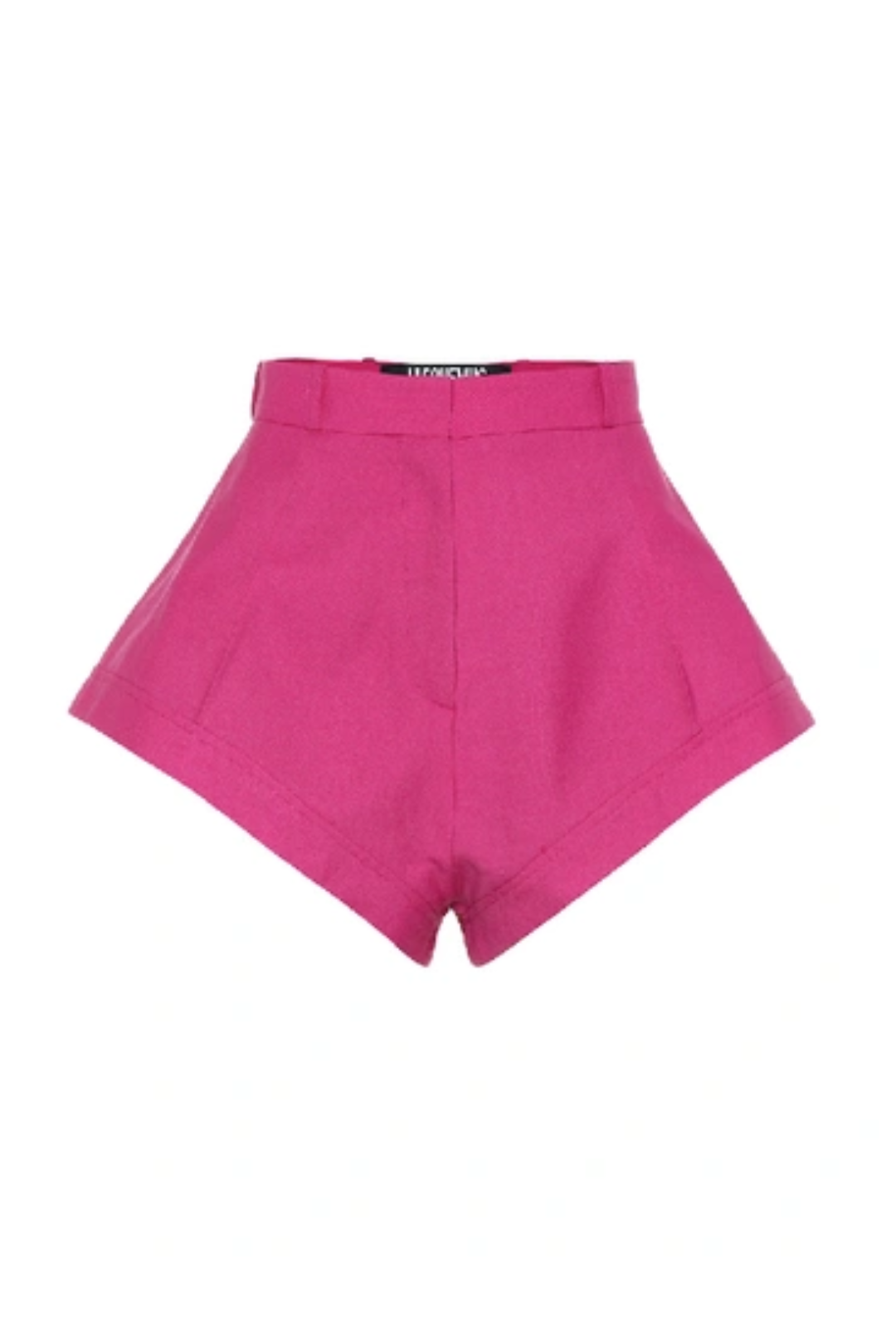Beautiful vibrant hot pink shorts with extremely flattering and flared leg opening, high waisted with front zip and button closure.