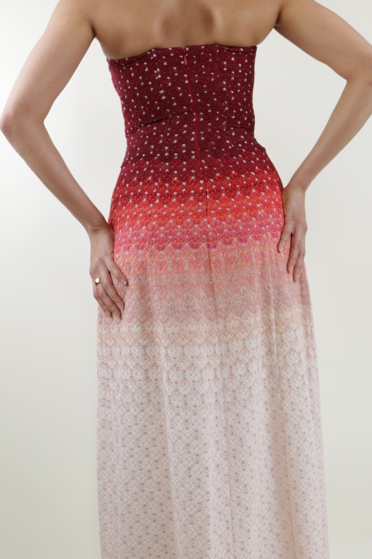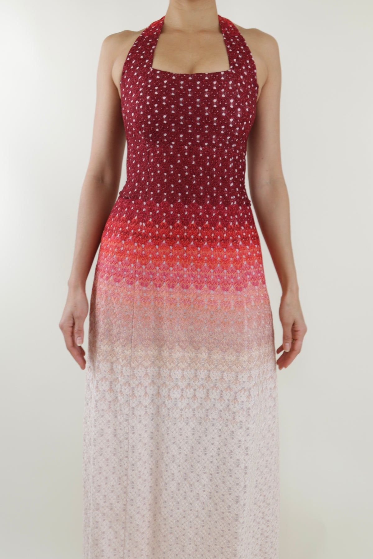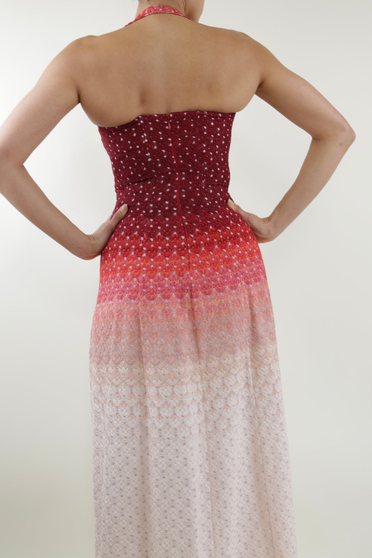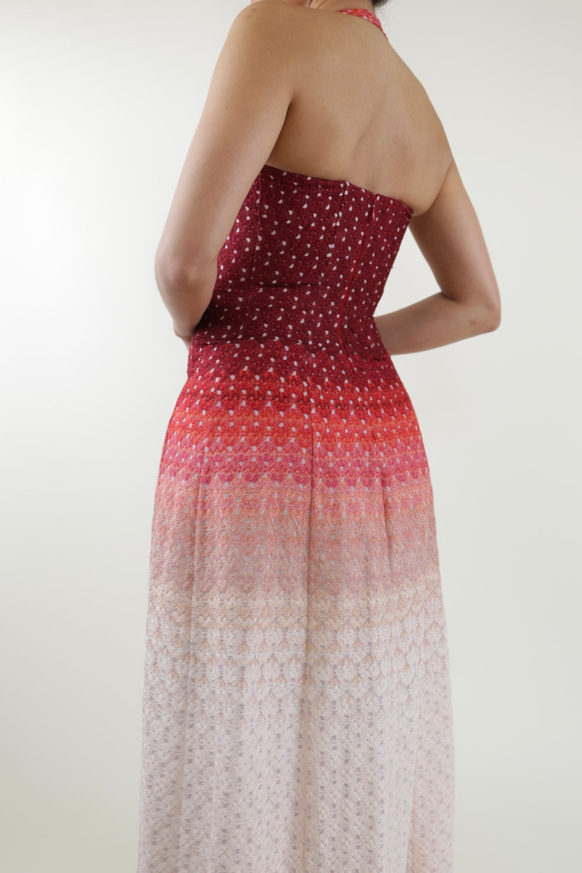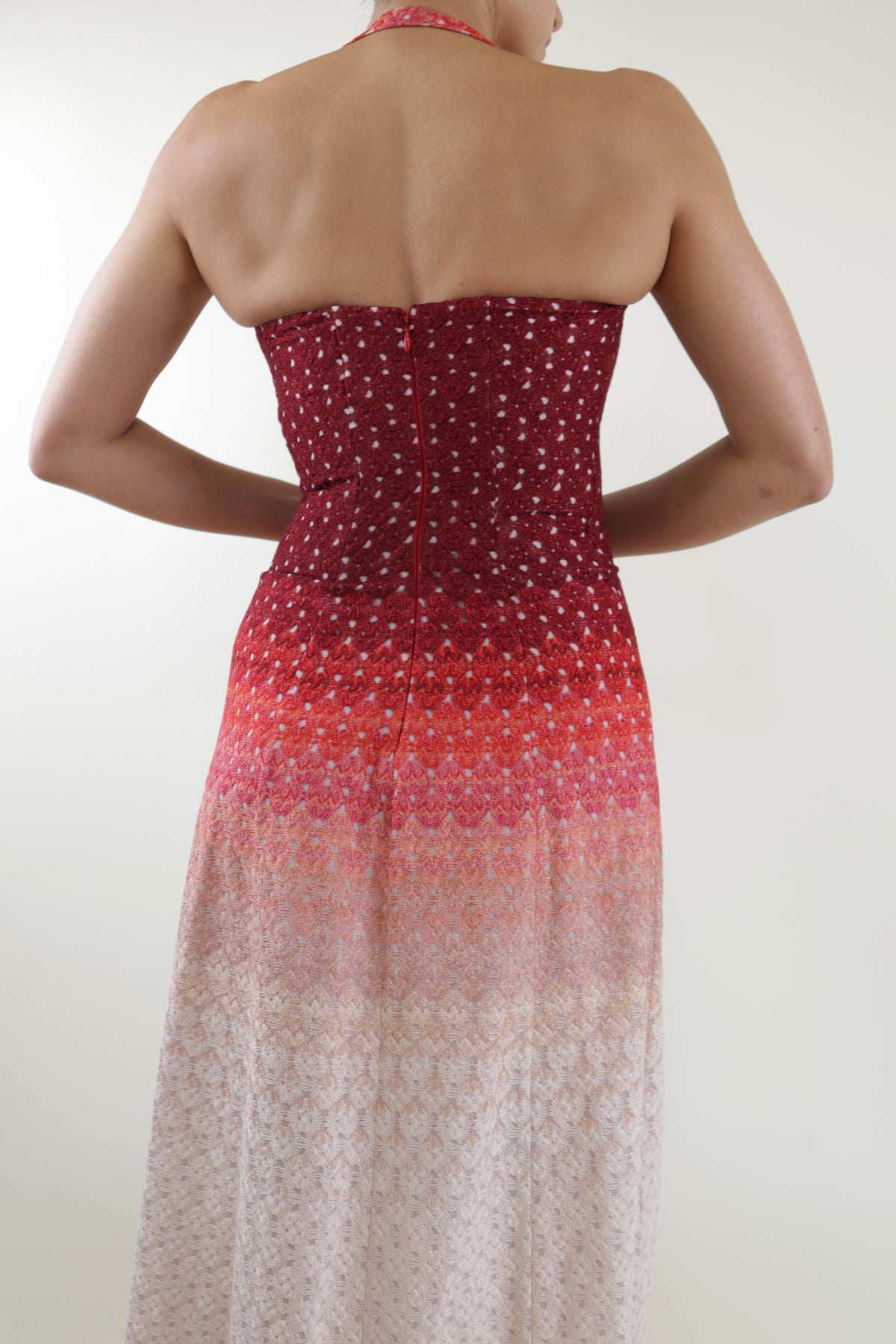 Missoni Red Halterneck Evening Dress with Red, Pink, Pale Pink Ombre Gradient Detail