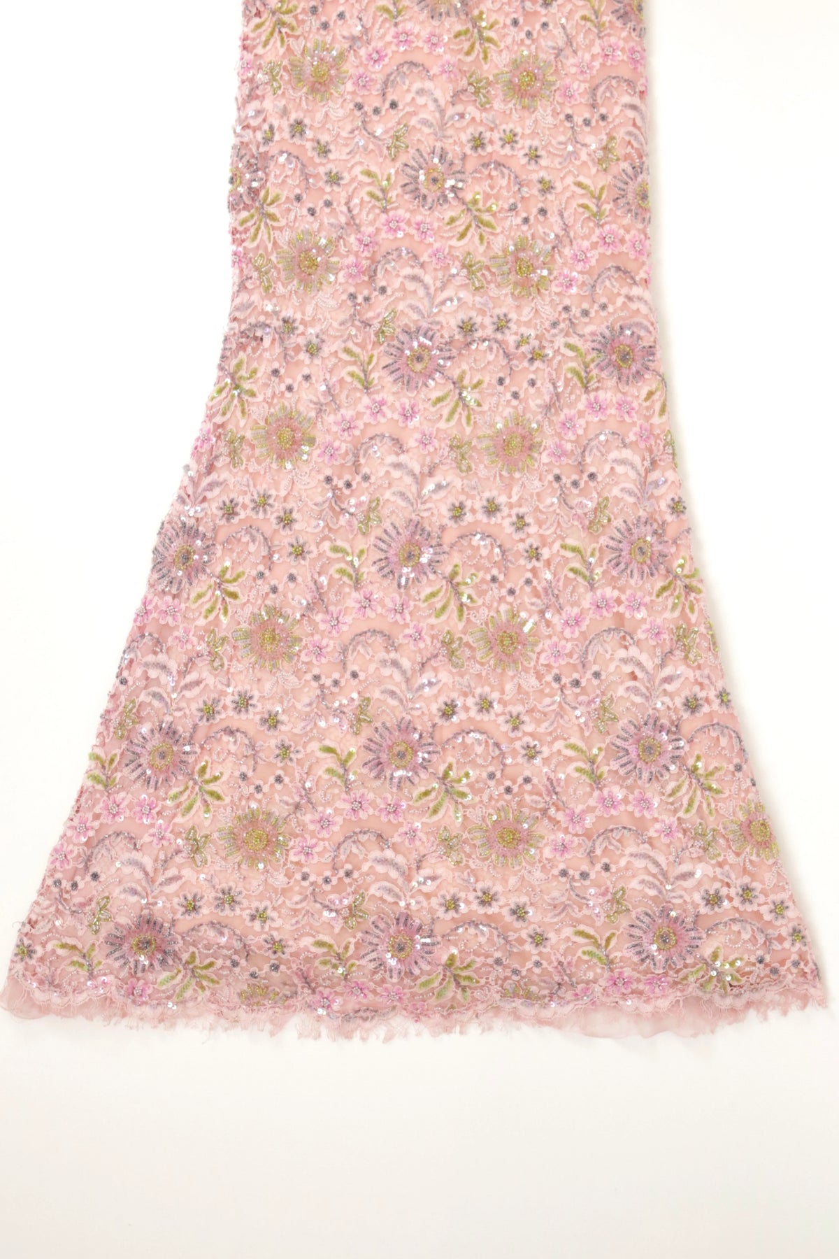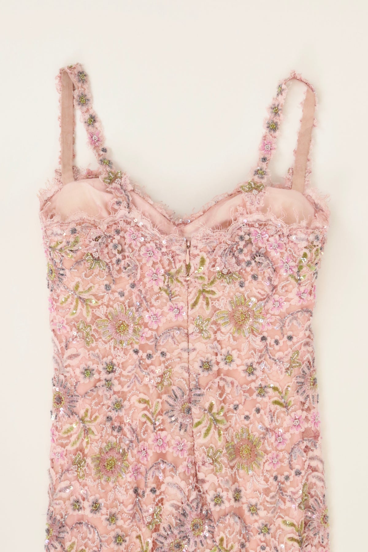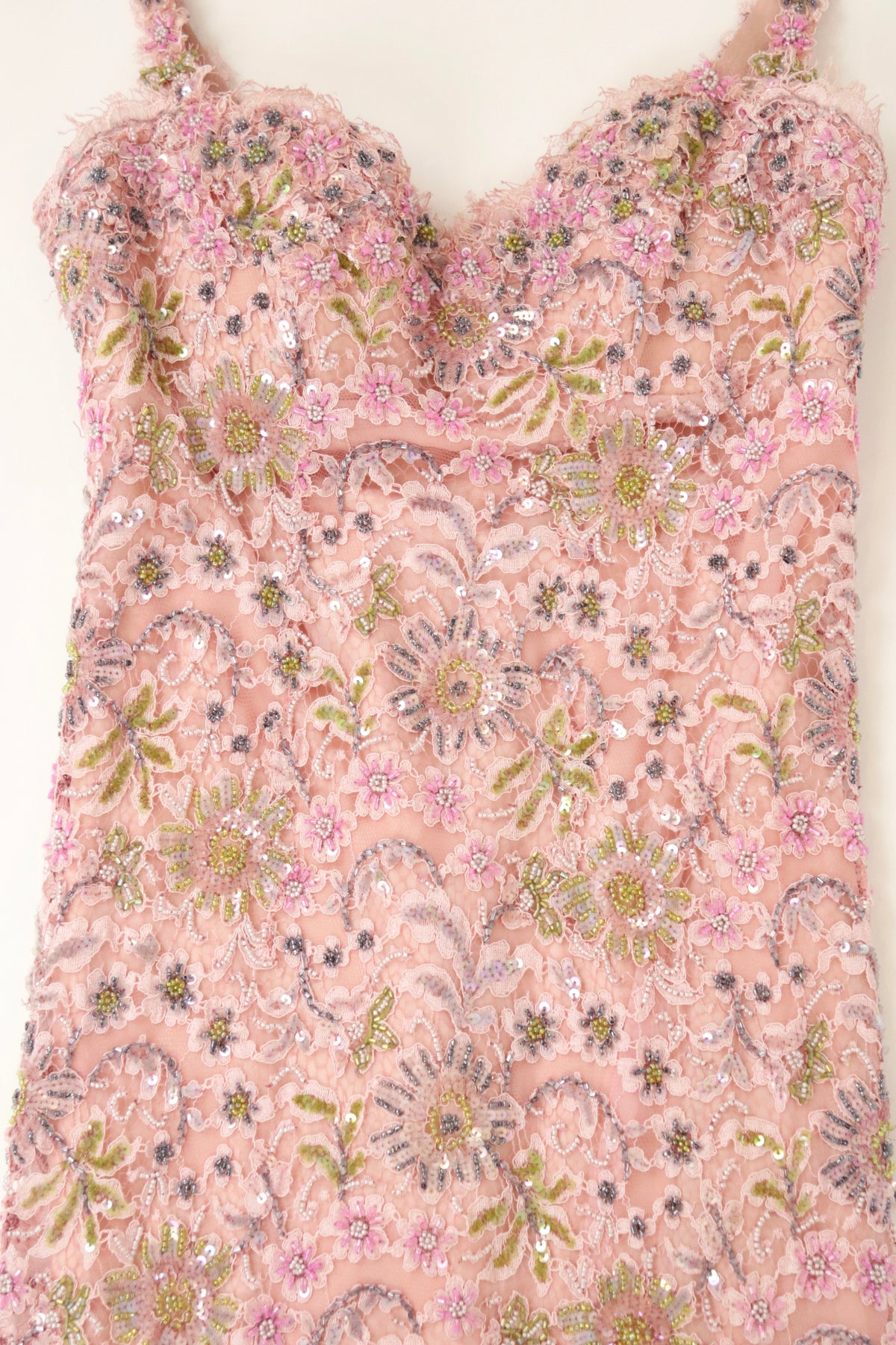 Beautiful pink sleeveless dress with beaded embellishments throughout, lace overlay, fully lined evening dress.