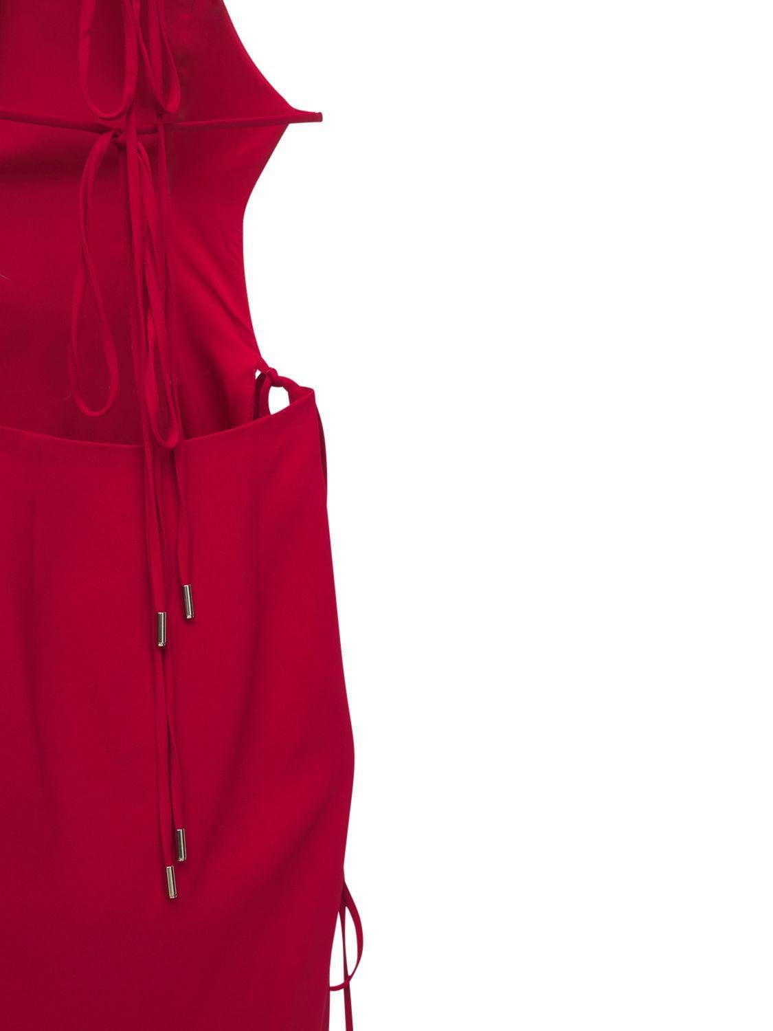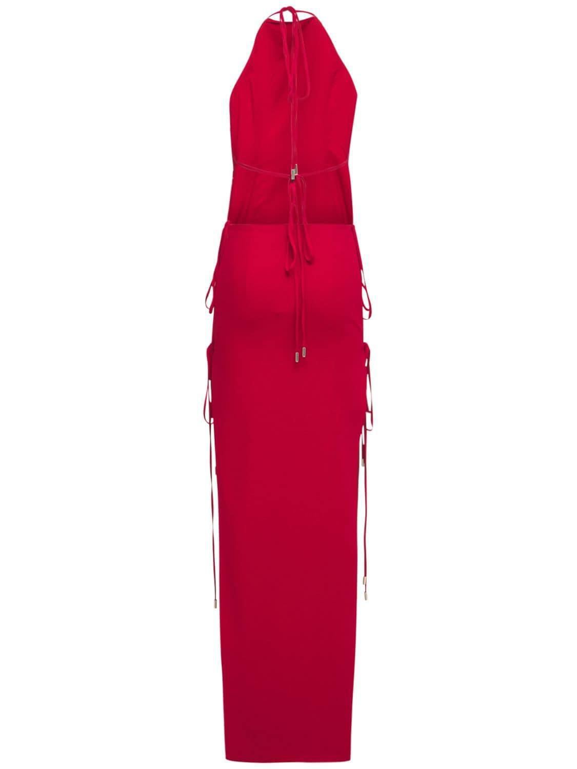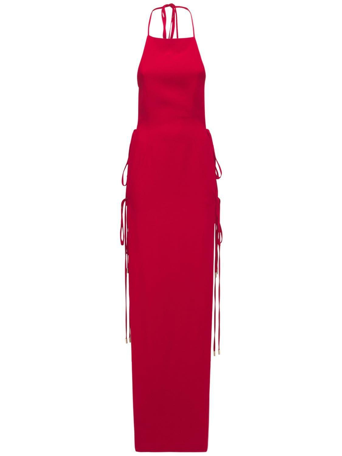 Back and side self-tie closure.