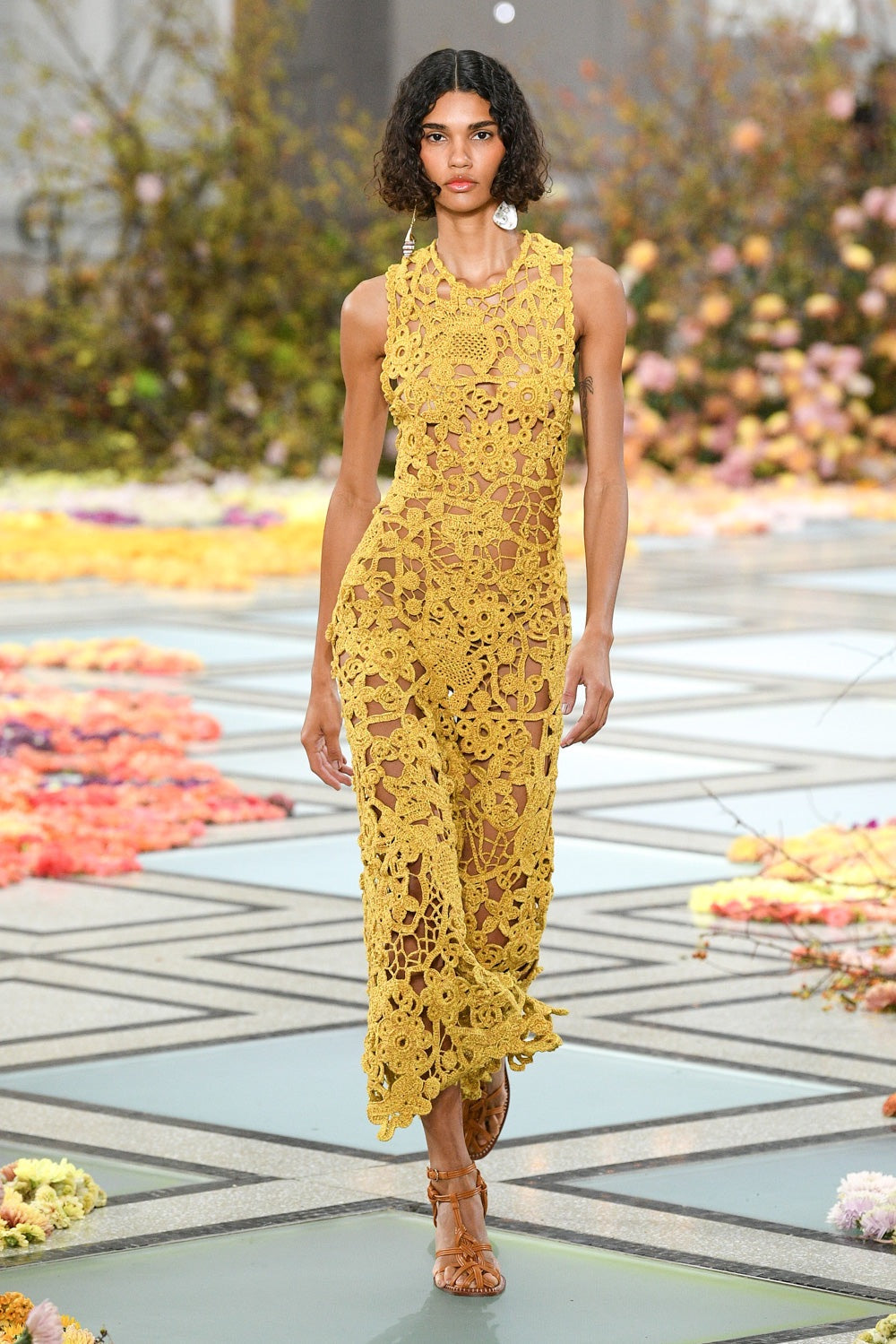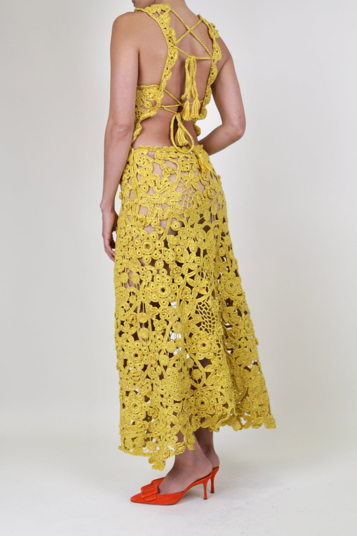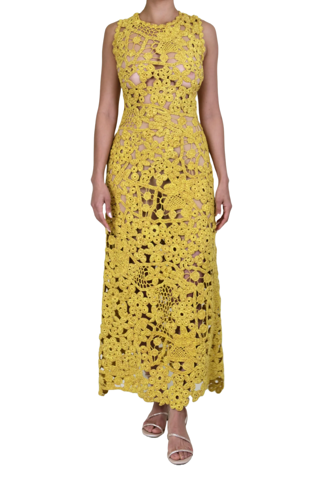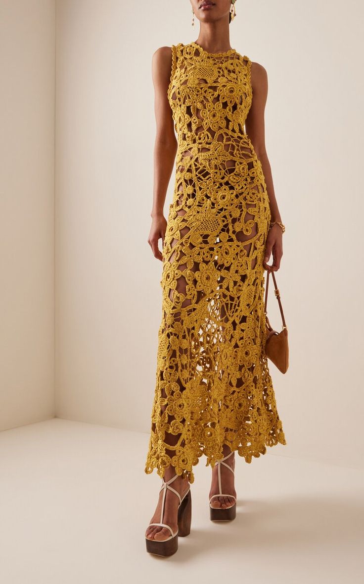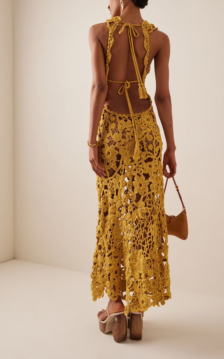 Made of cotton guipure lace, this slim midi dress is sleeveless with a scoop neckline that ties along the back. Take hints from the runway and wear yours with strappy sandals.