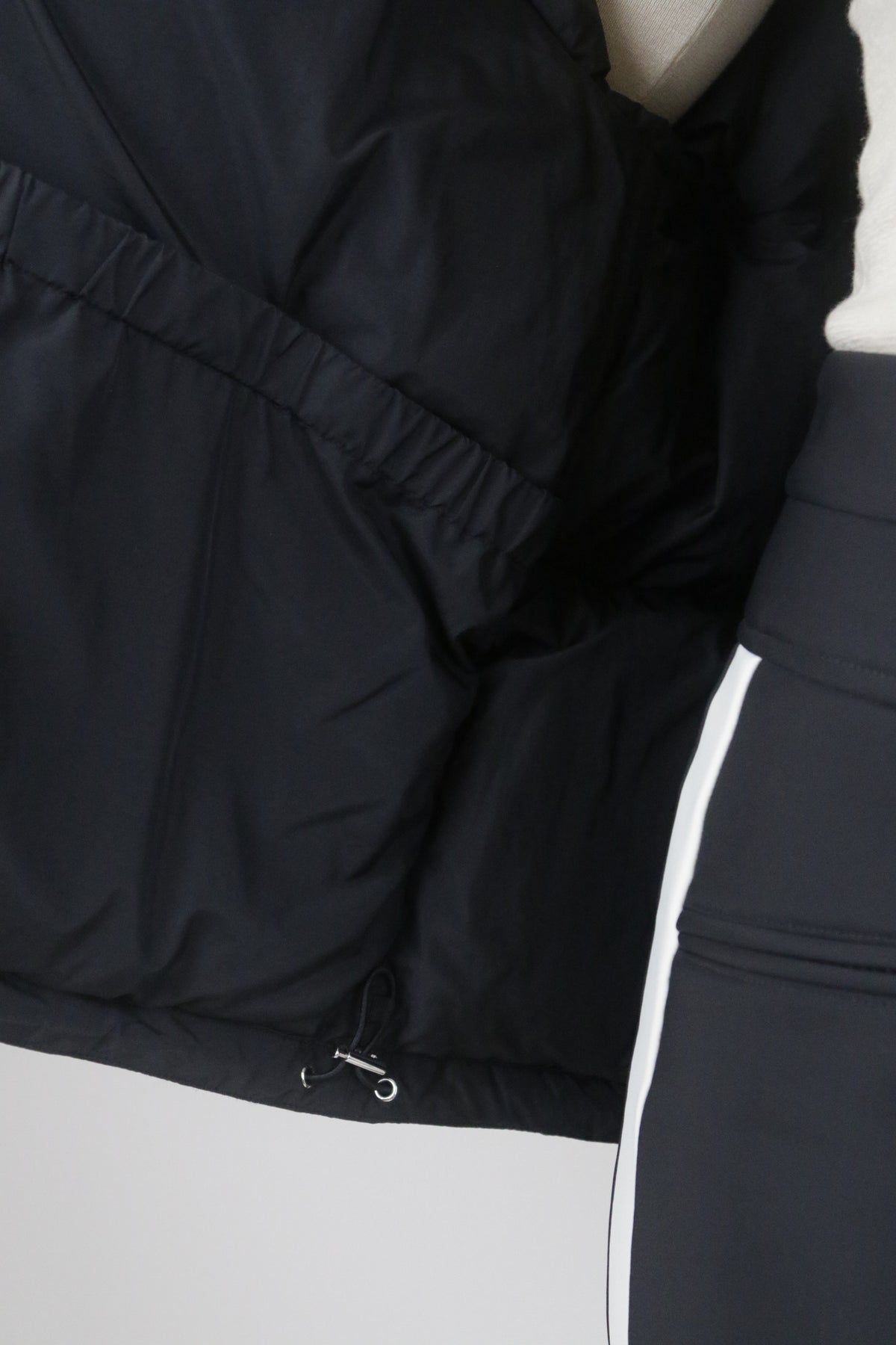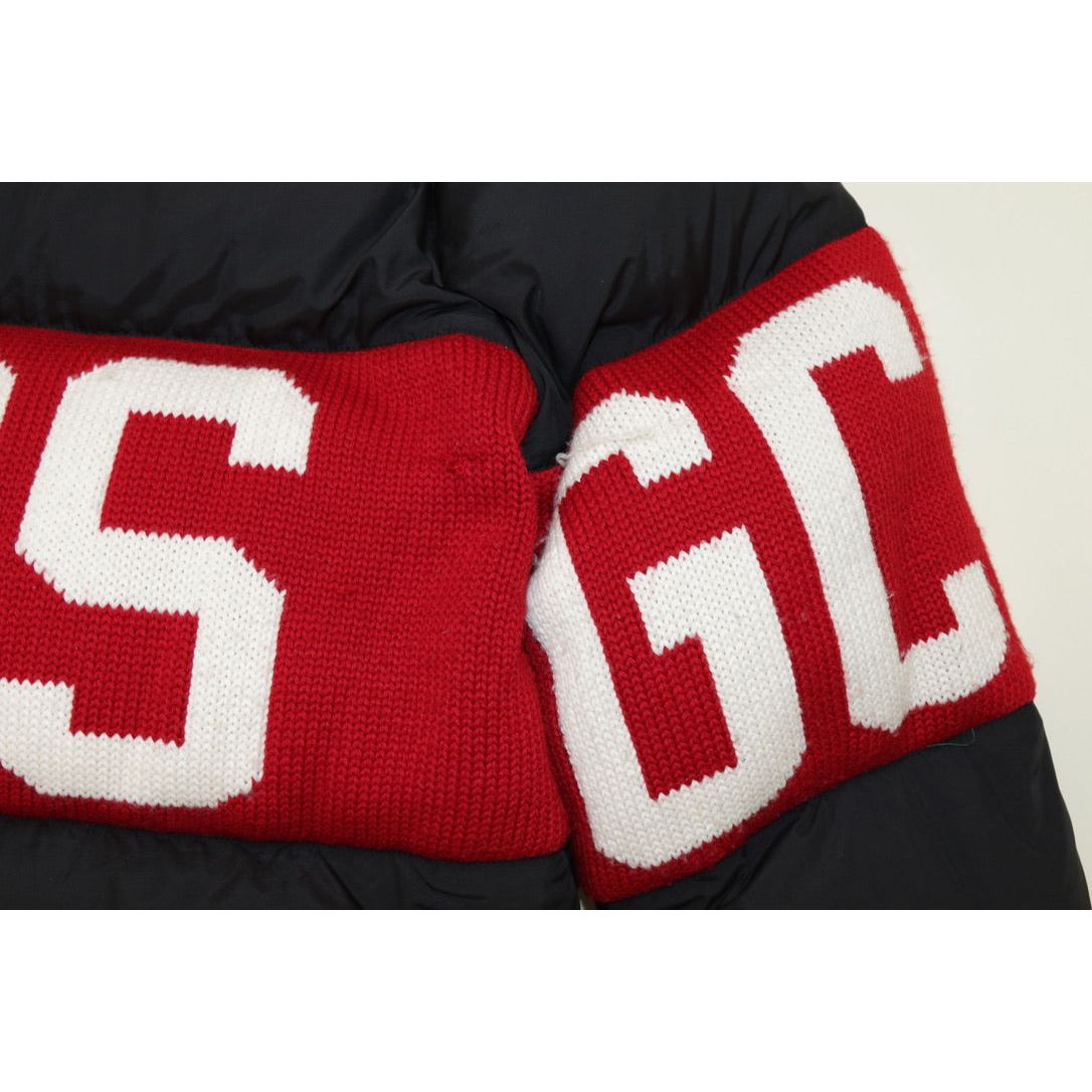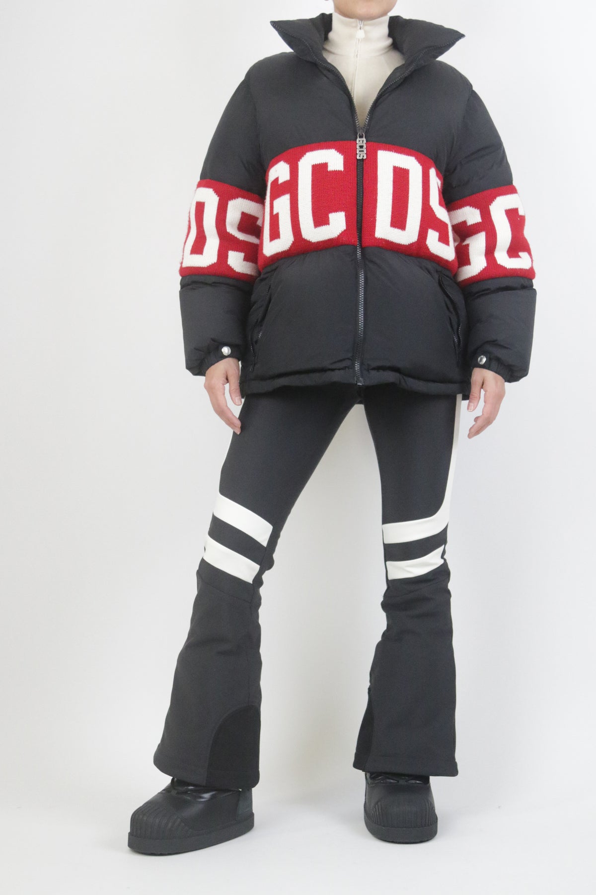 Black and red puffer logo jacket print to the front and rear. Feather down fill. Color-block, padded design with front zip fastening and logo zipper. Two side zip-fastening pockets. High neck. Long sleeves. Composition: 58% Polyamide, 42% Polyester; Lining 58% Polyamid, 42% Polyester; Fill 80% Down, 20% Duck Feathers; Embellishment 50% Acrylic, 50% Wool.