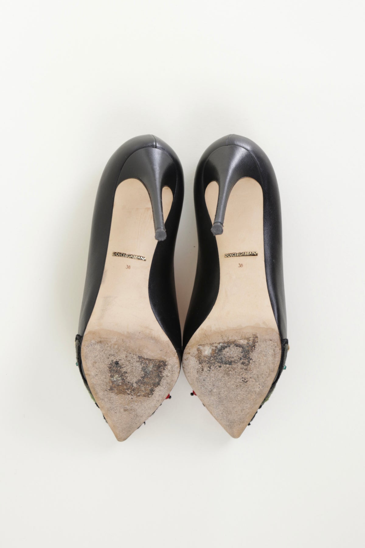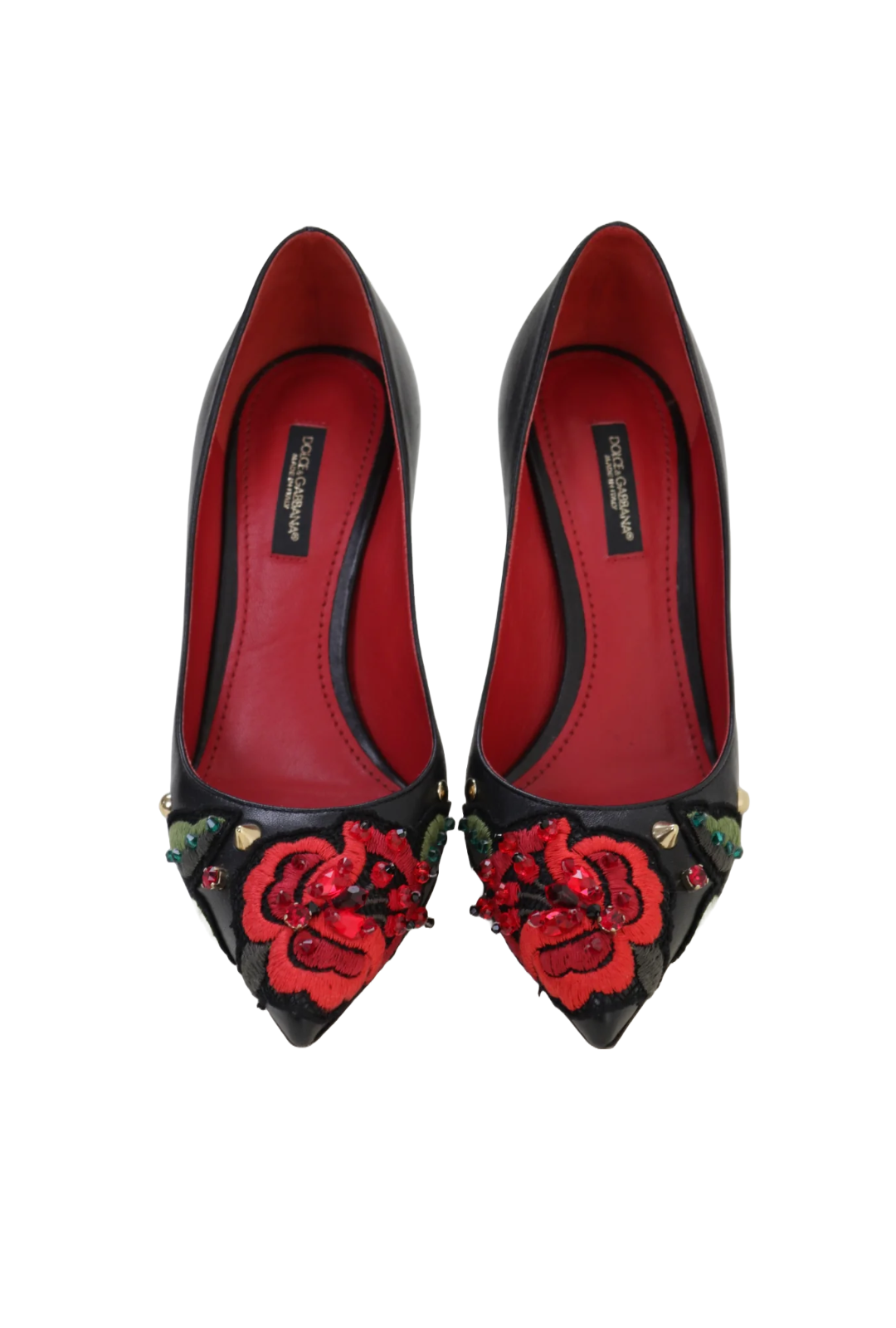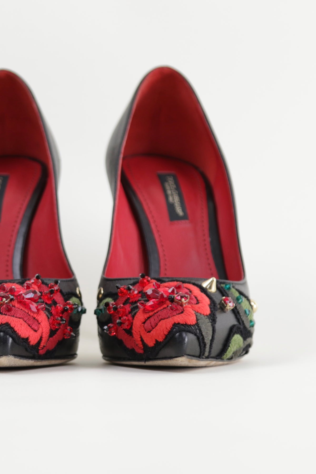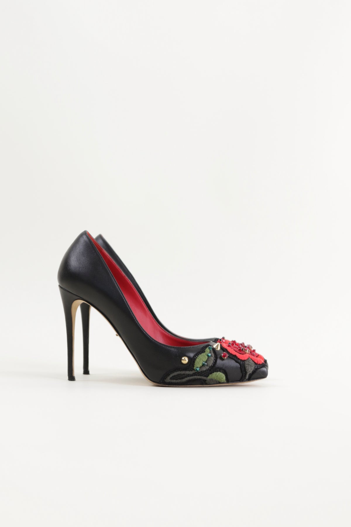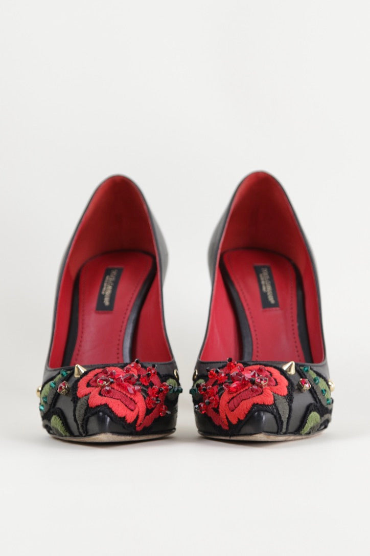 From the 2015 collection, these beautiful leather pumps feature the iconic Dolce & Gabbana rose embroidered across the toe.
