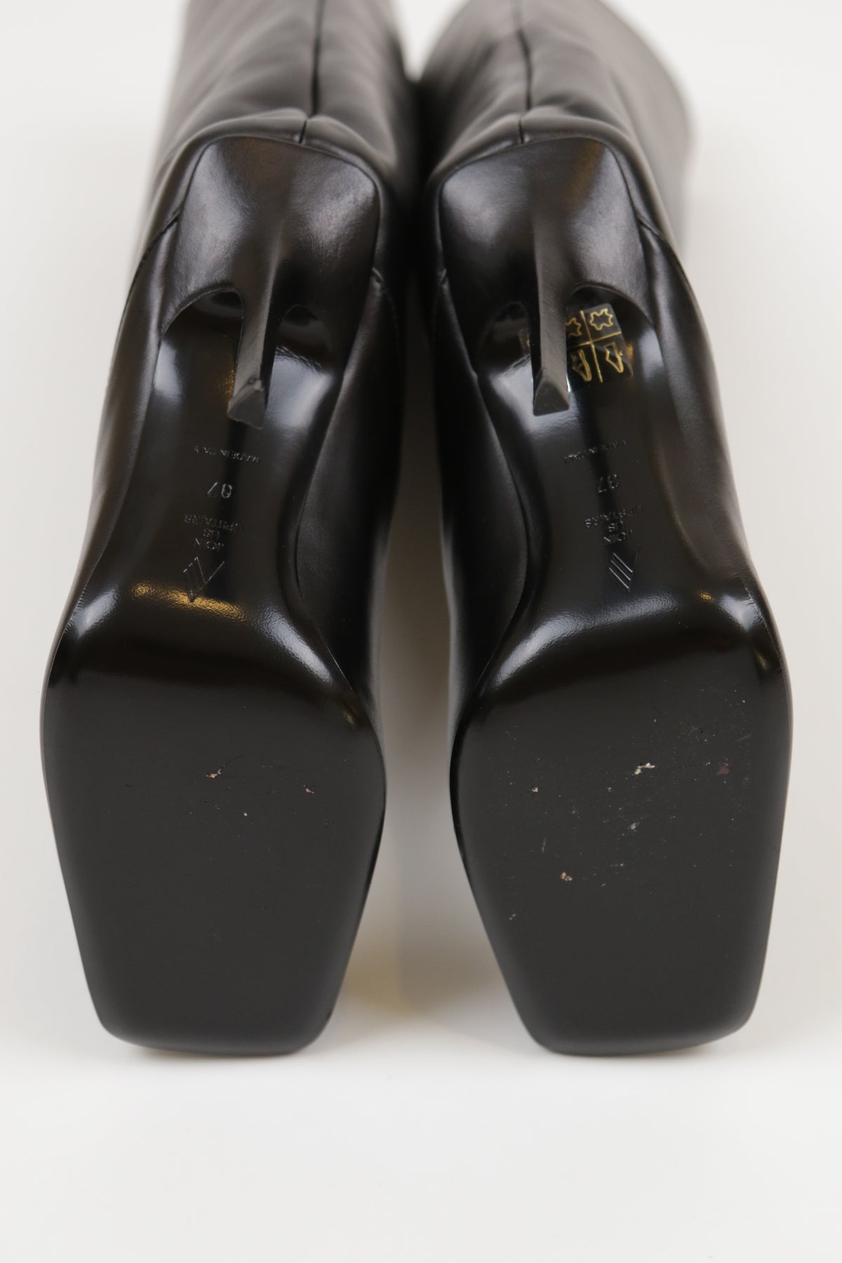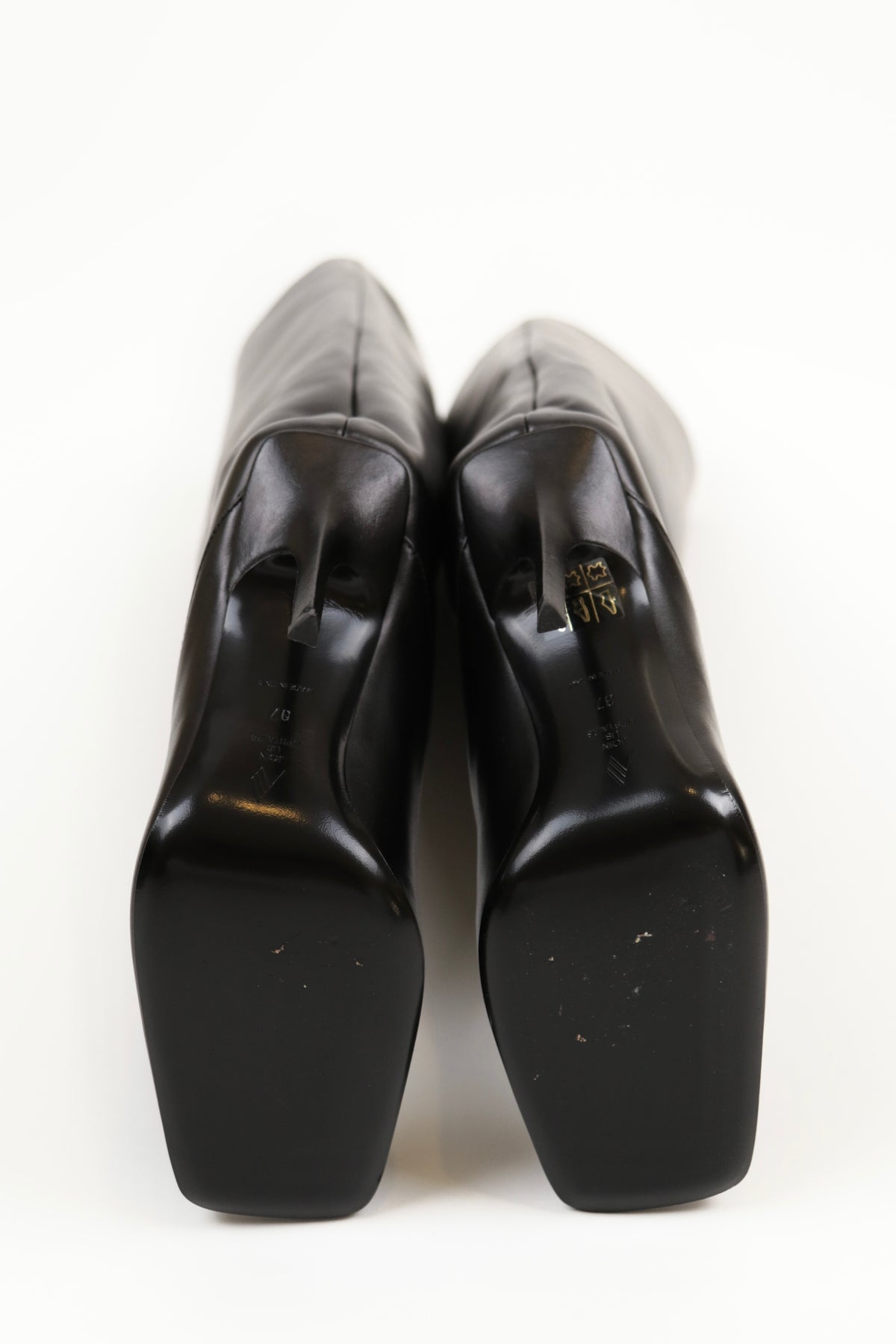 Brand new in box. Minor wear to bottom soles from fit modeling. Item has never been worn.