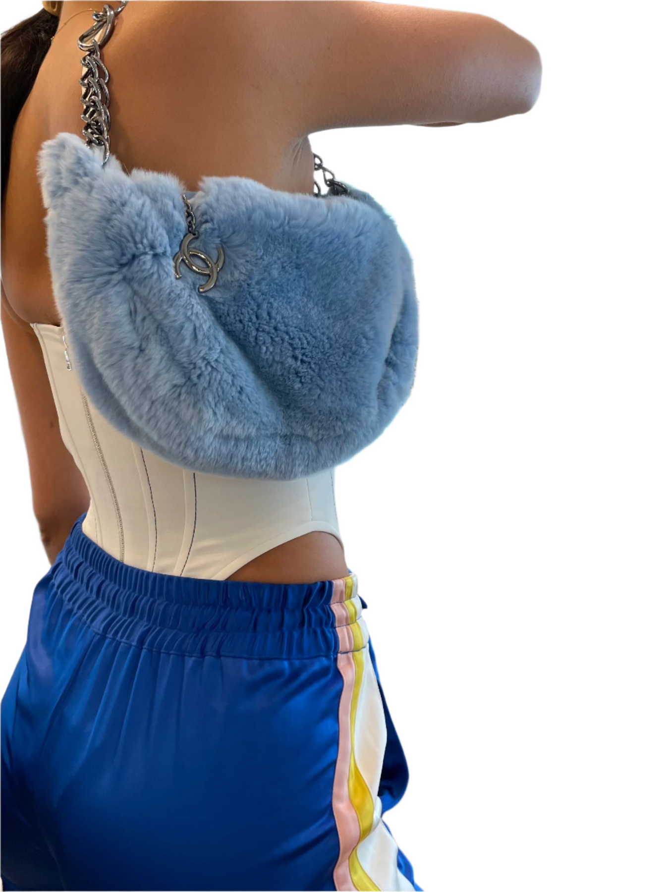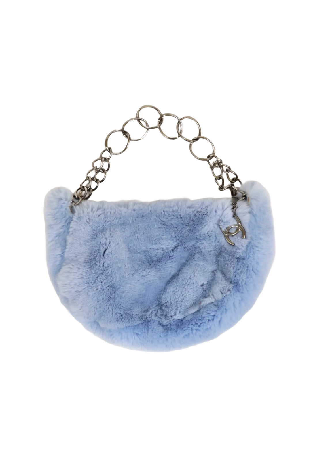 A luxurious blend of softness and edge, this Chanel Blue Rabbit Fur Mini Bag is a rare statement piece that embodies both playful charm and high-fashion sophistication. Crafted from plush, sky-blue rabbit fur, the bag exudes an ultra-tactile allure, making it the perfect accessory for those who appreciate texture and standout details.